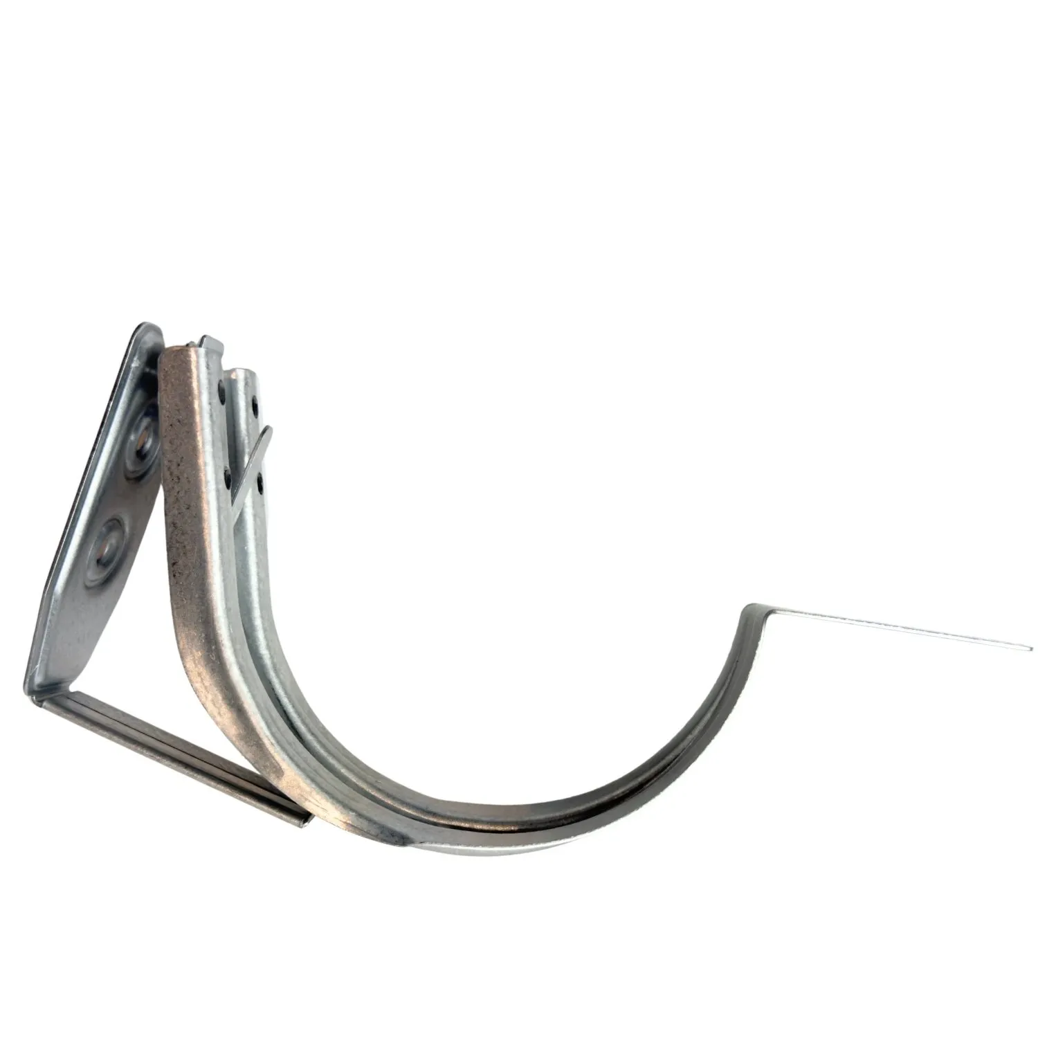 Muurbeugel zink voor mastgoot M280, verstelbare gradenplaat 10° tot 45°, bevestiging aan schuin boeideel of balk. Dakgoot waterpas monteren op niet-verticaal vlak. Max. beugel afstand 50-60 cm. Geschikt voor afwijkende dakhoeken.